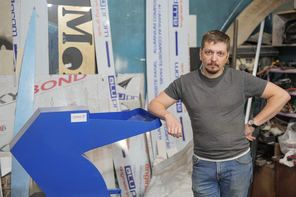 Також за грантові кошти команда придбала генератор — для монтажів просто неба й на випадок блекаутів, і подрібнювач для пластику. Адже під час виробництва реклами та світильників залишається чимало пластикових обрізків.