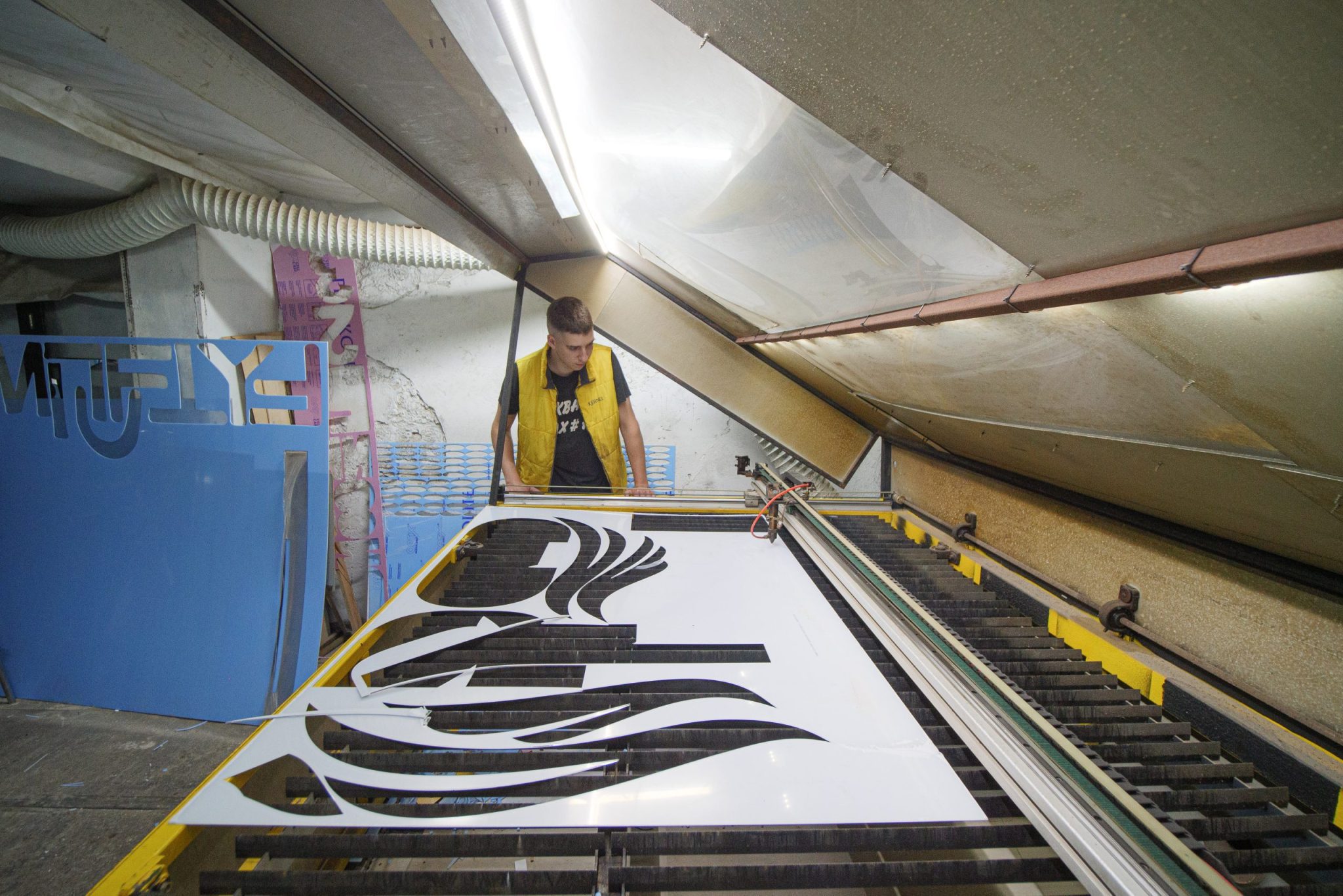 «У 2022-му ми взагалі не виготовляли зовнішніх вивісок. Брали точкові проєкти на світильники й інтер’єри. Ринок стояв. А ще борги, кредити — все це тягло вниз», — згадує він.